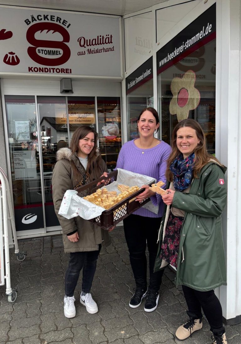 Die Bäckerei Stommel hat für alle Kinder süße Osterhäschen gebacken, die die Kinder mit leuchtenden Augen entgegengenommen haben.
